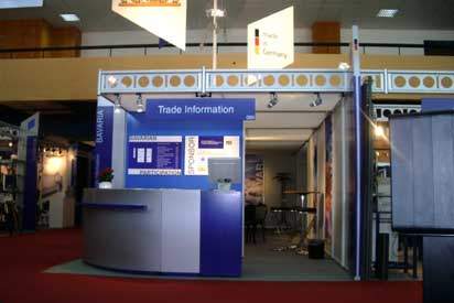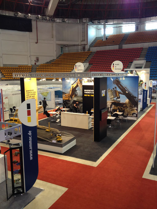 Client Federal Ministry of Economics and Technology, Germany, Association of the German Trade Fair Industry; Caterpillar Inc. Floor coverage 650 sqmDescription Modular system combined with custom made elements